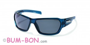 Очки спортивного стиля. Оправа синяя, линза поляризованная серая.