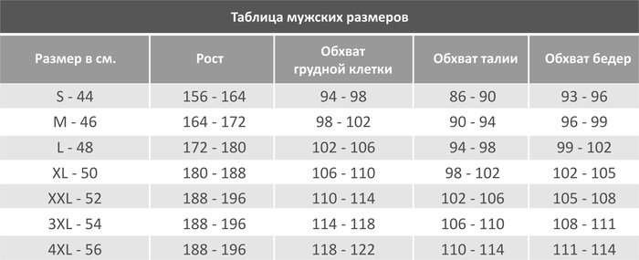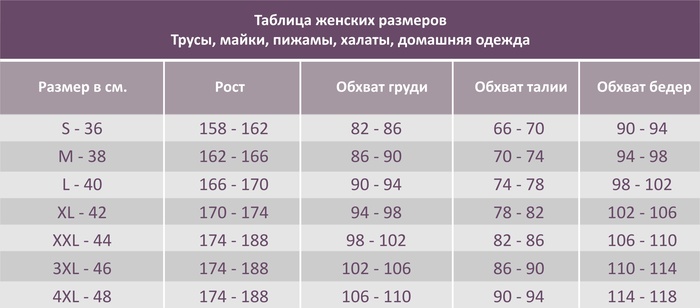 Таблицы розмеров